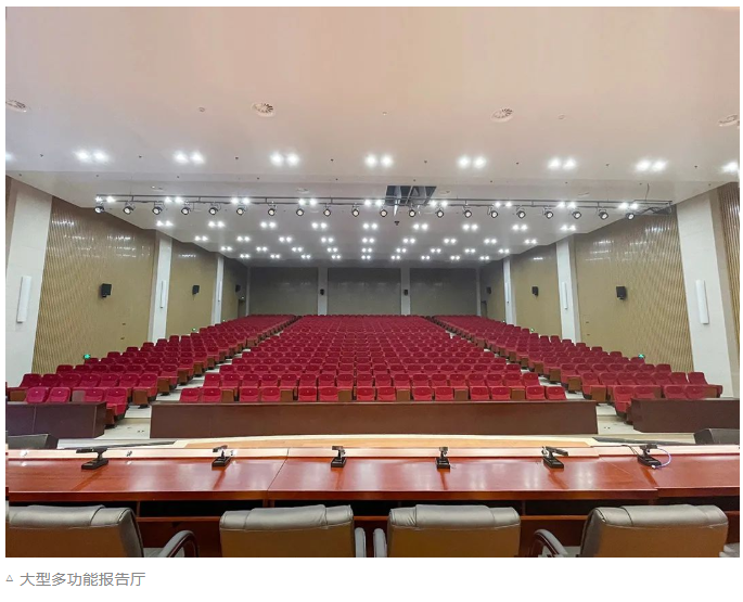 大型多功能報(bào)告廳可容納600余人,空間較大。要求多功能報(bào)告廳可滿足各類培訓(xùn)、學(xué)術(shù)報(bào)告、研討交流會(huì)等大中型會(huì)議及大中型文藝演出等多種使用需求,能滿足會(huì)議討論、發(fā)言等語言擴(kuò)聲使用功能,確保整套擴(kuò)聲系統(tǒng)聲音飽滿通透,人聲清晰自然。