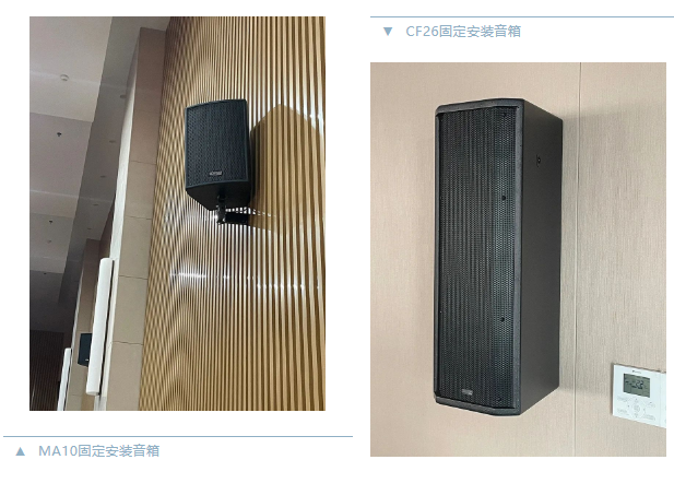 宴會(huì)廳需滿足大中型集會(huì)、聚餐及慶典活動(dòng)等功能需求。宴會(huì)廳同樣采用了若干只M10固定安裝音箱好和若干臺(tái)MI系列數(shù)字功放。